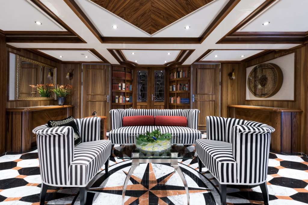 With accommodation for up to 26 guests across 11 staterooms, her layout includes a lavish master suite with private study and lounge, two VIP suites with fireplaces, plus a mix of doubles and convertible twins – all ensuite and designed for comfort in any climate.