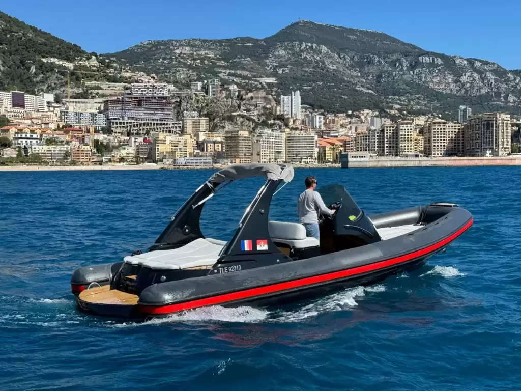 Experience a premium semi rigid boat rental in Monaco combining elegance, diesel inboard power, and exceptional stability. This 8 meter vessel welcomes up to 8 guests and features 1 cabin for added comfort during your charter.