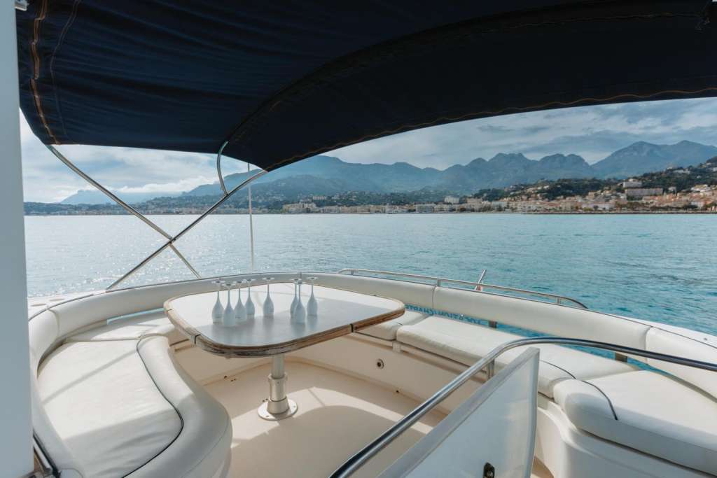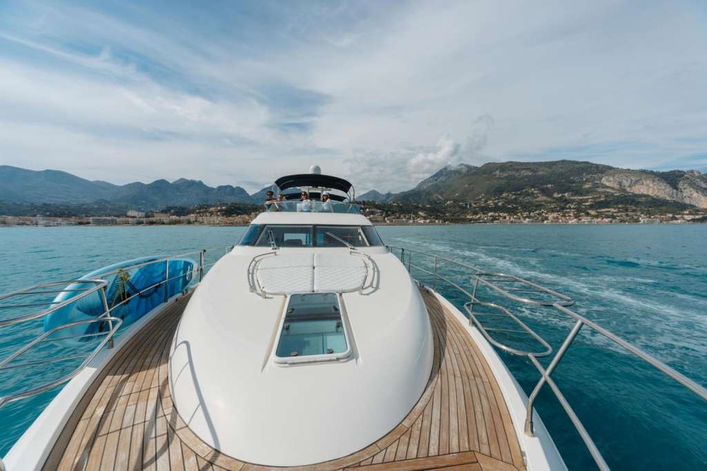 This 17 meter flybridge yacht offers spacious elegance and exceptional comfort for up to 14 guests along the French Riviera. Cruising smoothly at 20 knots, it combines performance with refined luxury.
