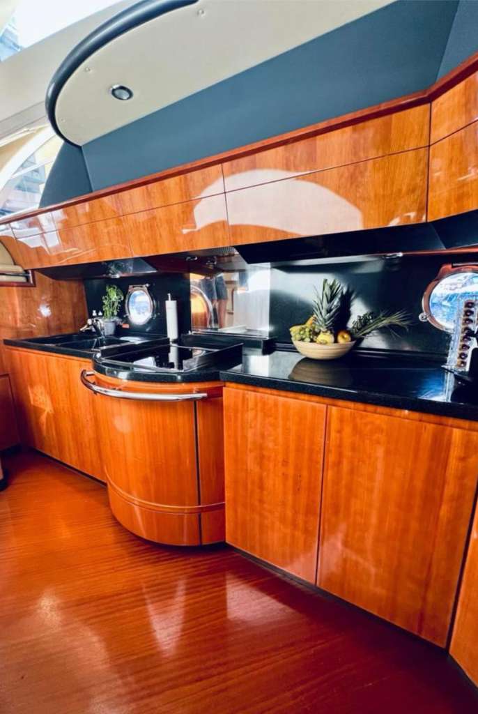 This 17 meter flybridge yacht delivers refined elegance and dynamic performance along the French Riviera. Designed for up to 10 guests, it cruises smoothly at 22 knots while offering generous interior and exterior spaces.