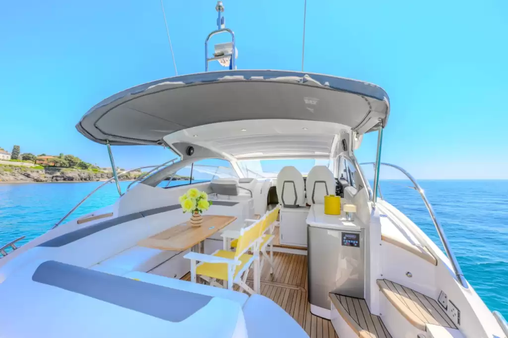 The Princess V40 “Katsu” is a sleek and modern 13-meter mini yacht built in 2024, combining British engineering with luxury, comfort, and cutting-edge technology. Based in Monaco-Ville and captained by a seasoned skipper, this premium motorboat is perfect for stylish day trips along the French Riviera. With 800 HP, accommodation for up to 8 guests, and premium onboard amenities like Seakeeper stabilizer, A/C, and convertible saloon, it delivers a refined, high-end experience for discerning travelers.