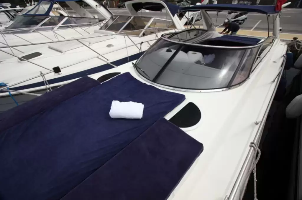 Maker: Sunseeker Model: Superhawk 48 Sleeping places: 1 Fuel: Not included in the rental price Capacity: 10 Speed: Up to 40 knots (estimated with 900HP triple engine setup)